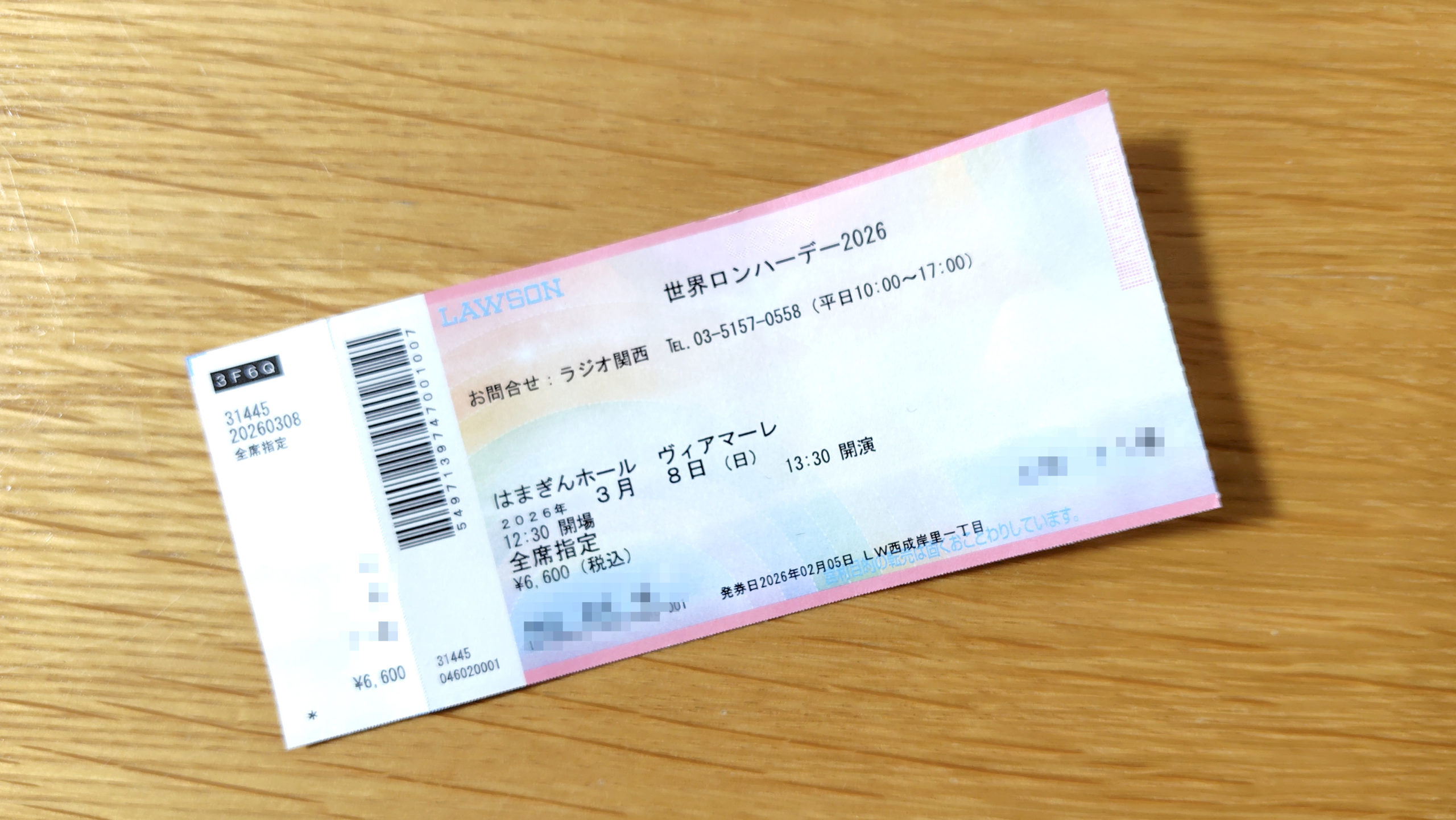 2026年3月8日(日)「はまぎんホール ヴィアマーレ」という会場だったため、新幹線で朝から新横浜に移動。